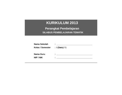 Silabus tematik kelas i merupakan rencana pembelajaran pada suatu kelompok mata pelajaran dengan tema tertentu, yang mencakup standar .